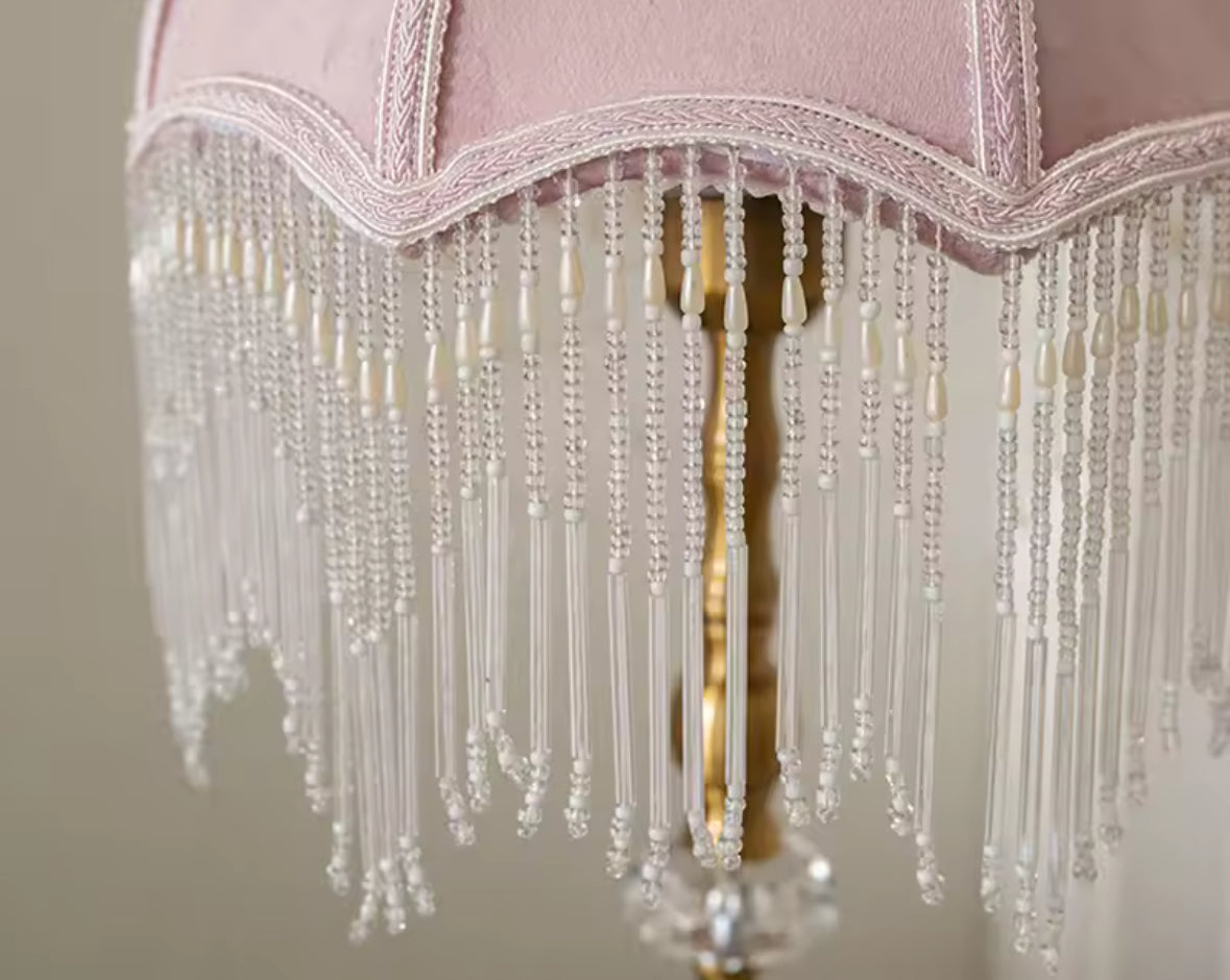 With her blush velvet shade, pearl-kissed fringe, and vintage crystal base, Rosabelle Velvet Crush isn’t just a lamp—she’s a mood. Soft, sweet, and effortlessly enchanting, she lights up your space like a love letter left on a lace pillow.