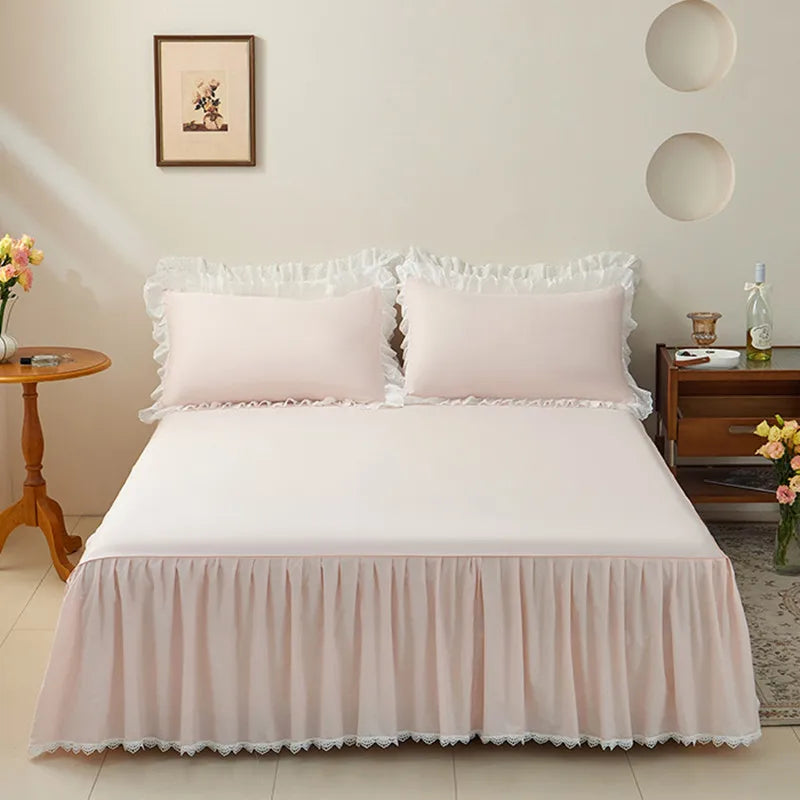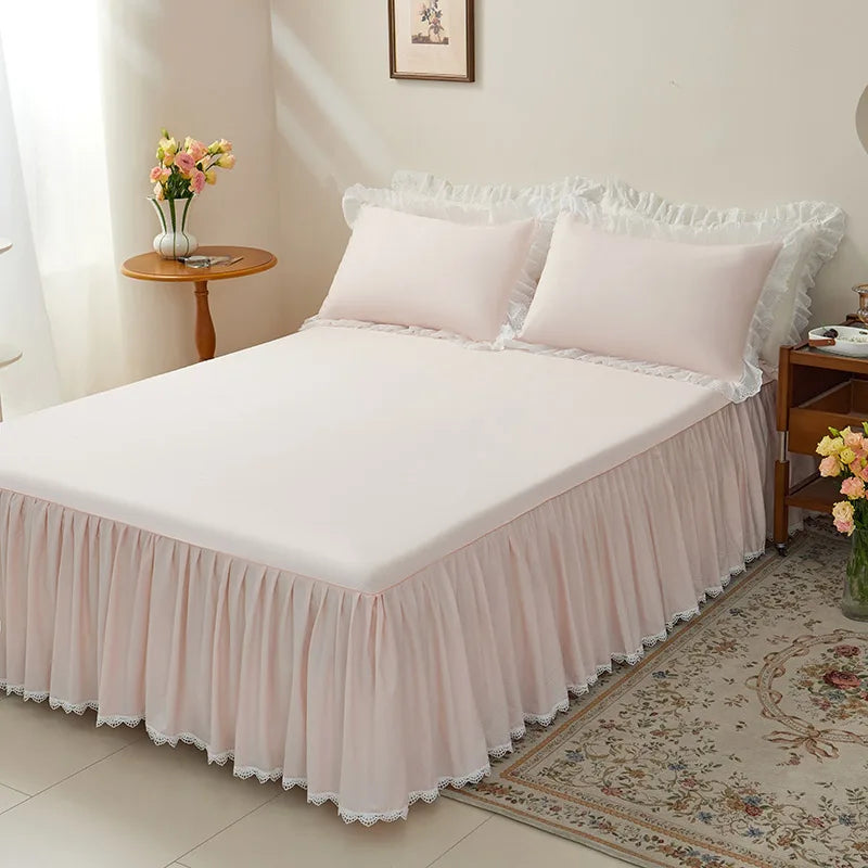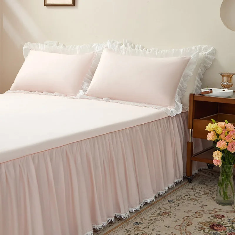 With soft gathers and delicate lace trim, it layers your bed in charm and instantly turns any room into a fairytale. Perfect for princess daydreamers, coquette cuties, and anyone building their dream bedroom from the sheets up.